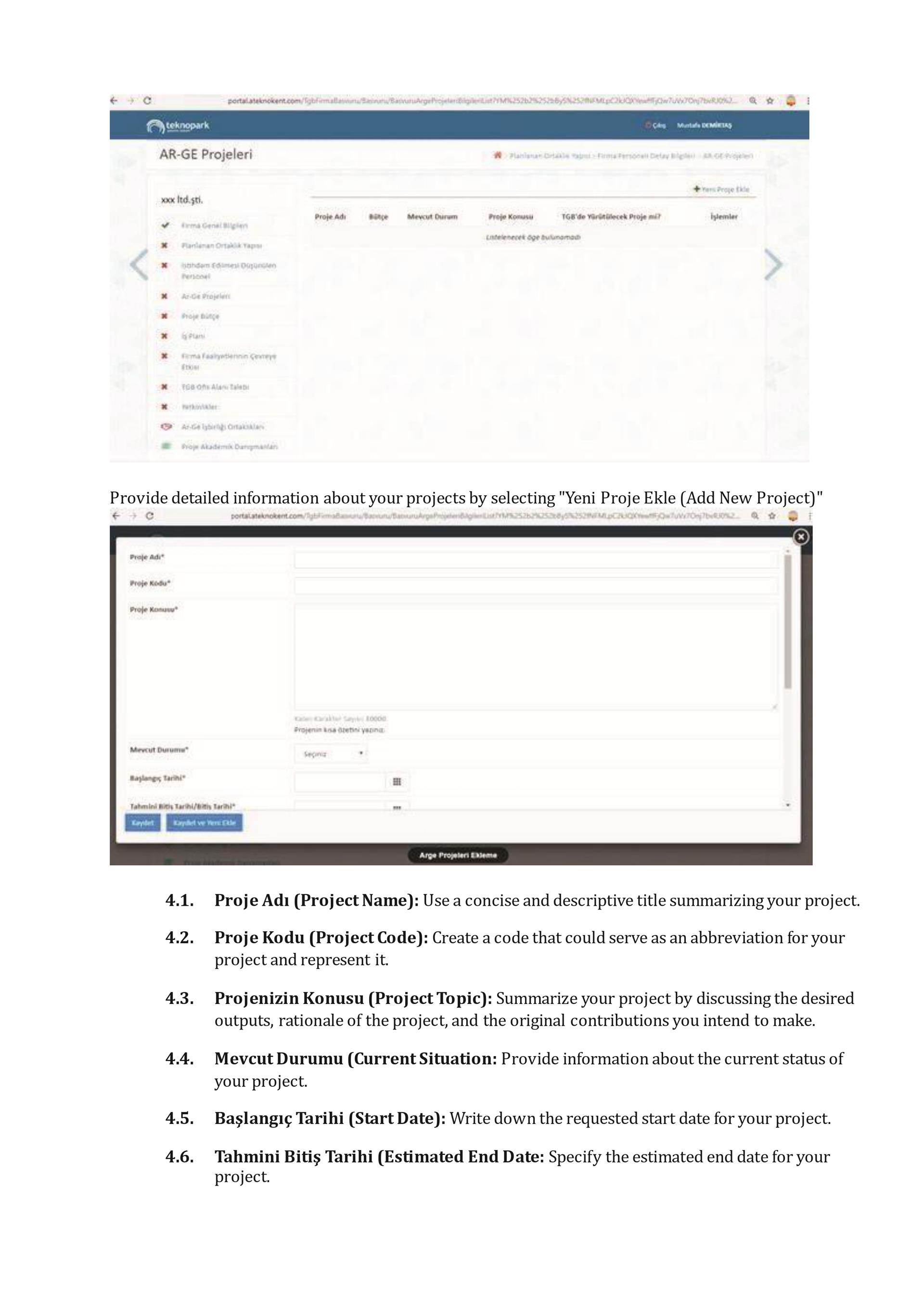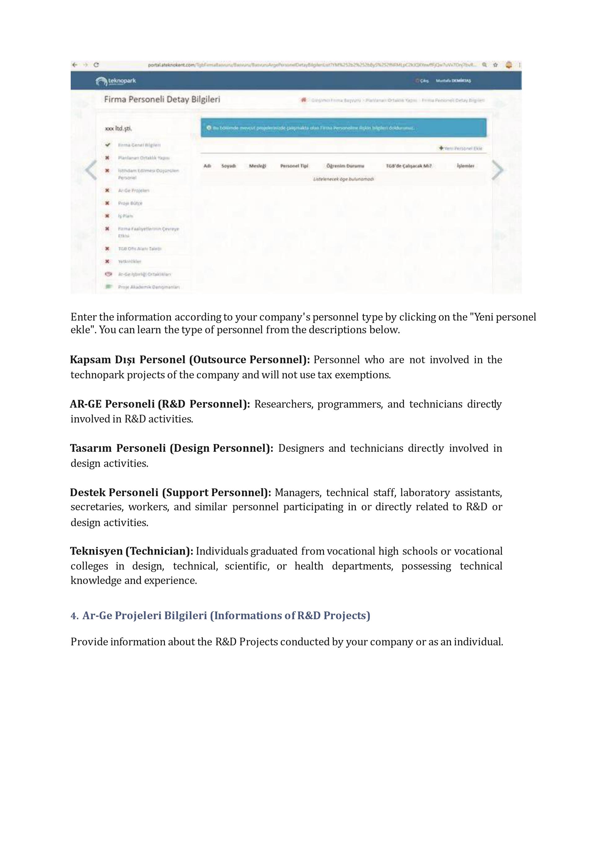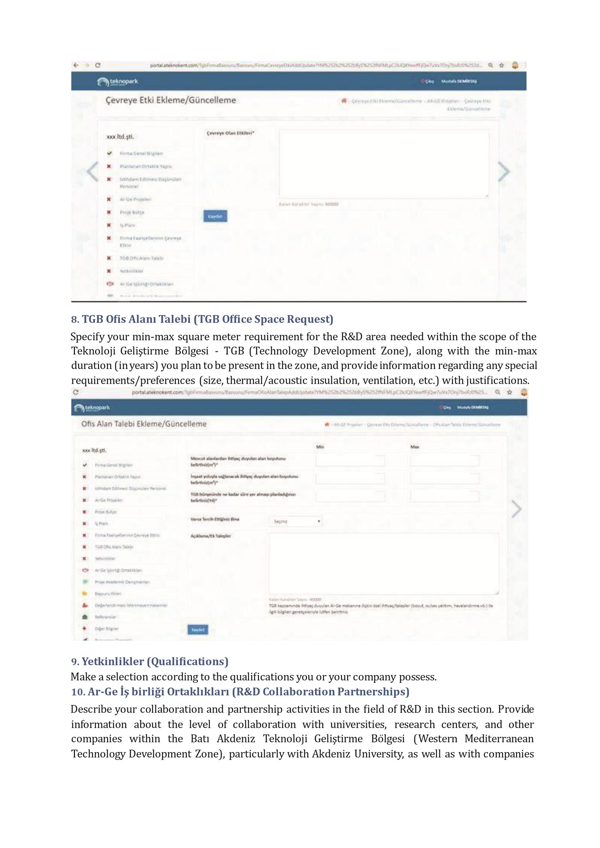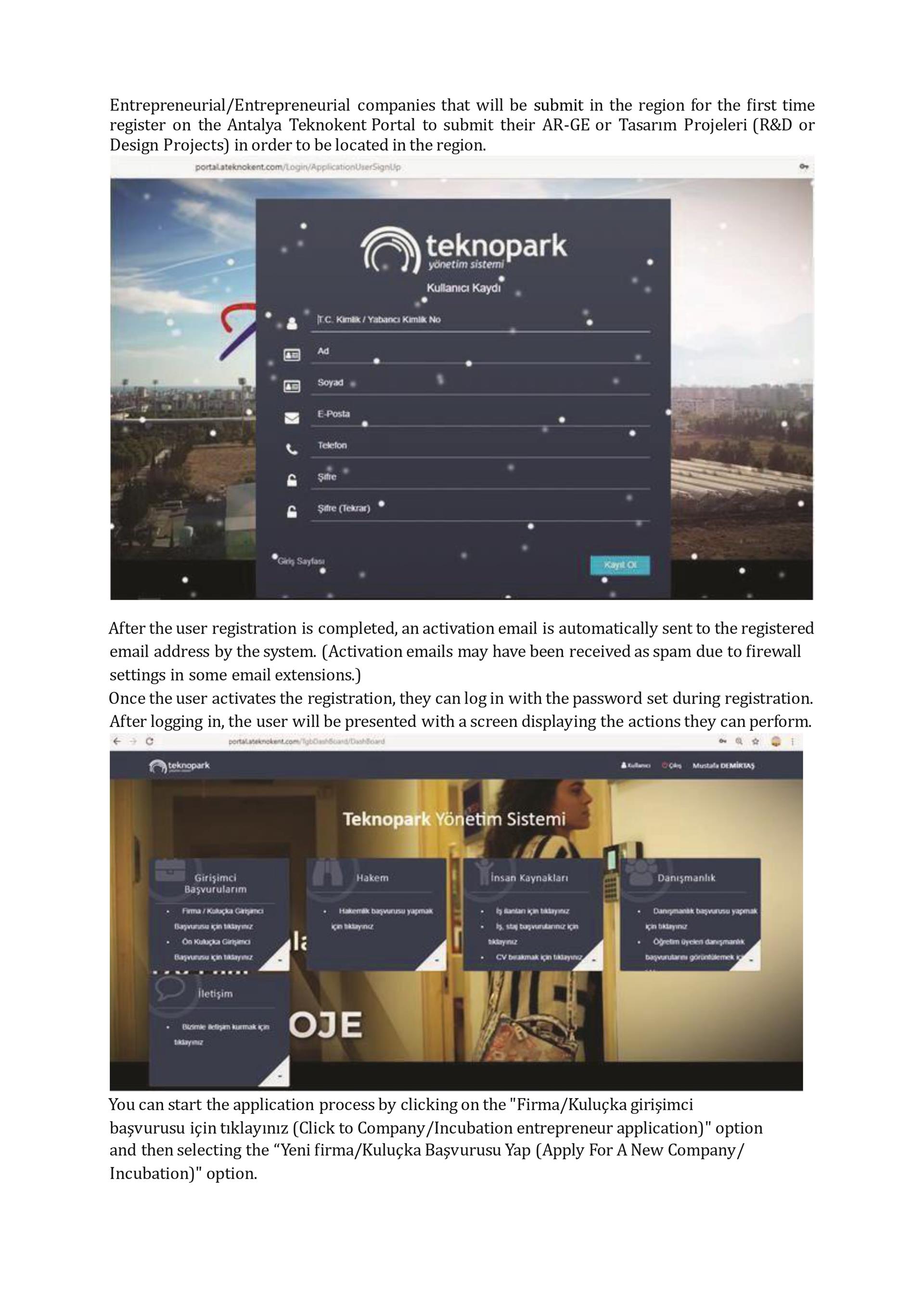 Entrepreneur/entrepreneur companies that will be in the region for the first time register their users on the Antalya Technopark Portal to submit their R&D or Design Project applications to be in the region.