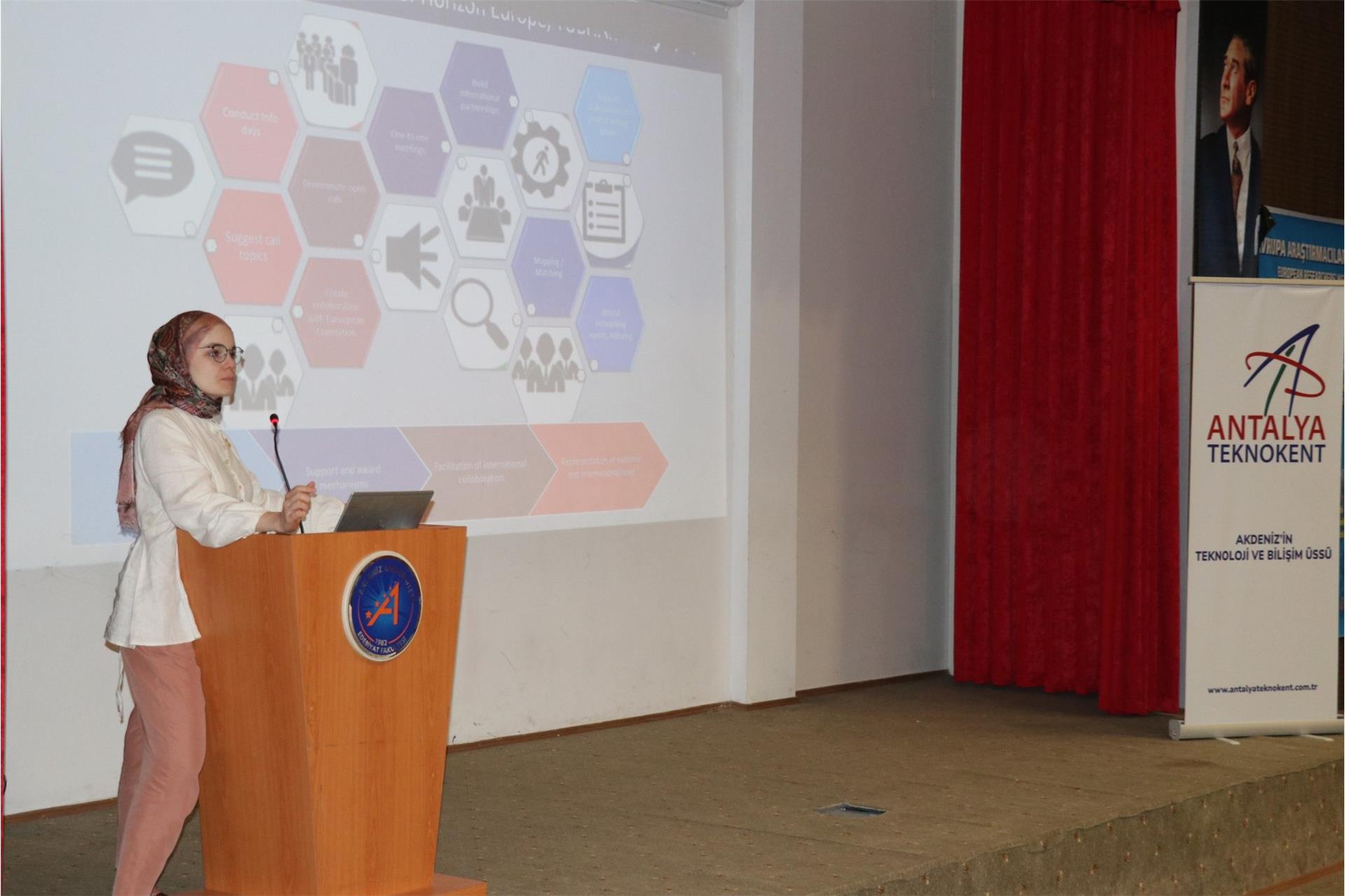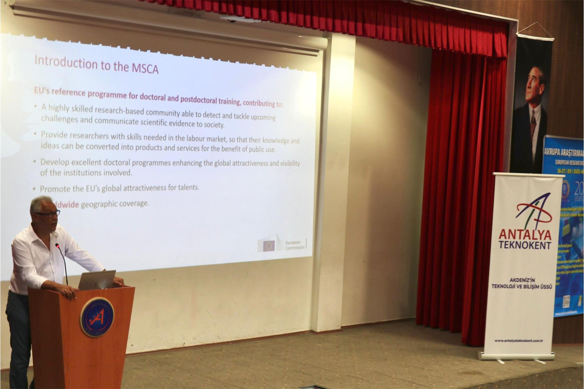 Antalya Teknokent ev sahipliğinde “Marie Sklodowska Curie Alanı (MSCA) Uluslararası Burs ve Araştırma Destekleri Bilgilendirme Toplantısı” gerçekleştirildi. Etkinlikte, European Research Executive Agency of the European Commission'dan Prof. Dr. Renat Bilyalov ve TÜBİTAK Ulusal İrtibat Noktası Yetkilisi Şeyma Sayımlar, katılımcılara, MSCA programı kapsamında sunulan uluslararası araştırma bursları ve finansal destekler, araştırmacıların projelerini geliştirmeleri için sunulan uluslararası imkanlar, proje başvuru süreçleri ve dikkat edilmesi gereken konular hakkında bilgilendirmede bulundular. Etkinlikte, değerli paylaşımlarıyla konuşmacılara ve katılımcıların gösterdiği yoğun ilgiye teşekkür ederiz.
